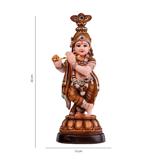 PolyMarble Guruvayoor Krishna Idol | Decorative Hindu God Statue | Kanhaji Murti Showpiece | Figurine Home Decor | Craft Gifts for House Warming for Living Room, Temple, Brown Idol