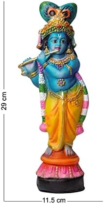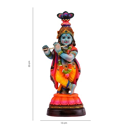 Handcrafted Krishna Murti Showpiece Hindu God Idol Decorative Statue Figurine for Home Decor Gifts for House Warming for Living Room, Multicolour