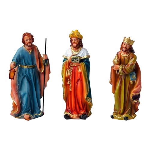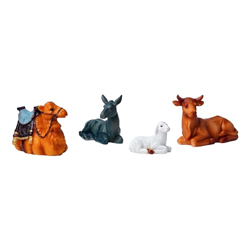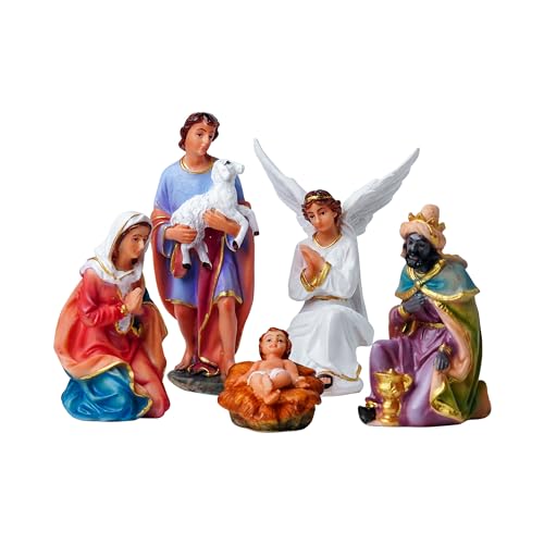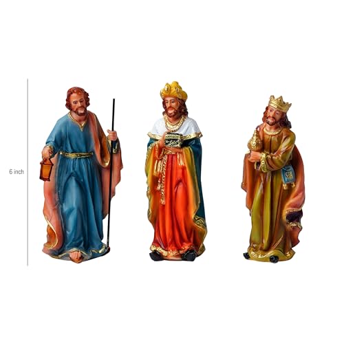 Package Content: Nativity Set Includes Mary, Joseph, Baby Jesus, Angel, 3-Wise Men, A Shepherd, 4-Animals ( 1 Camels, 1 Donkey, 1 Cow, 1 Sheep ).The Tallest Figurine Has 6 Inches Height. The Remaining Ones Have 5.5 Inches Height. Others Like Mother Mary Have 4 Inches Height. Baby Jesus- 3.5 Inches X 2 Inches. Set Of 12 Figurines.